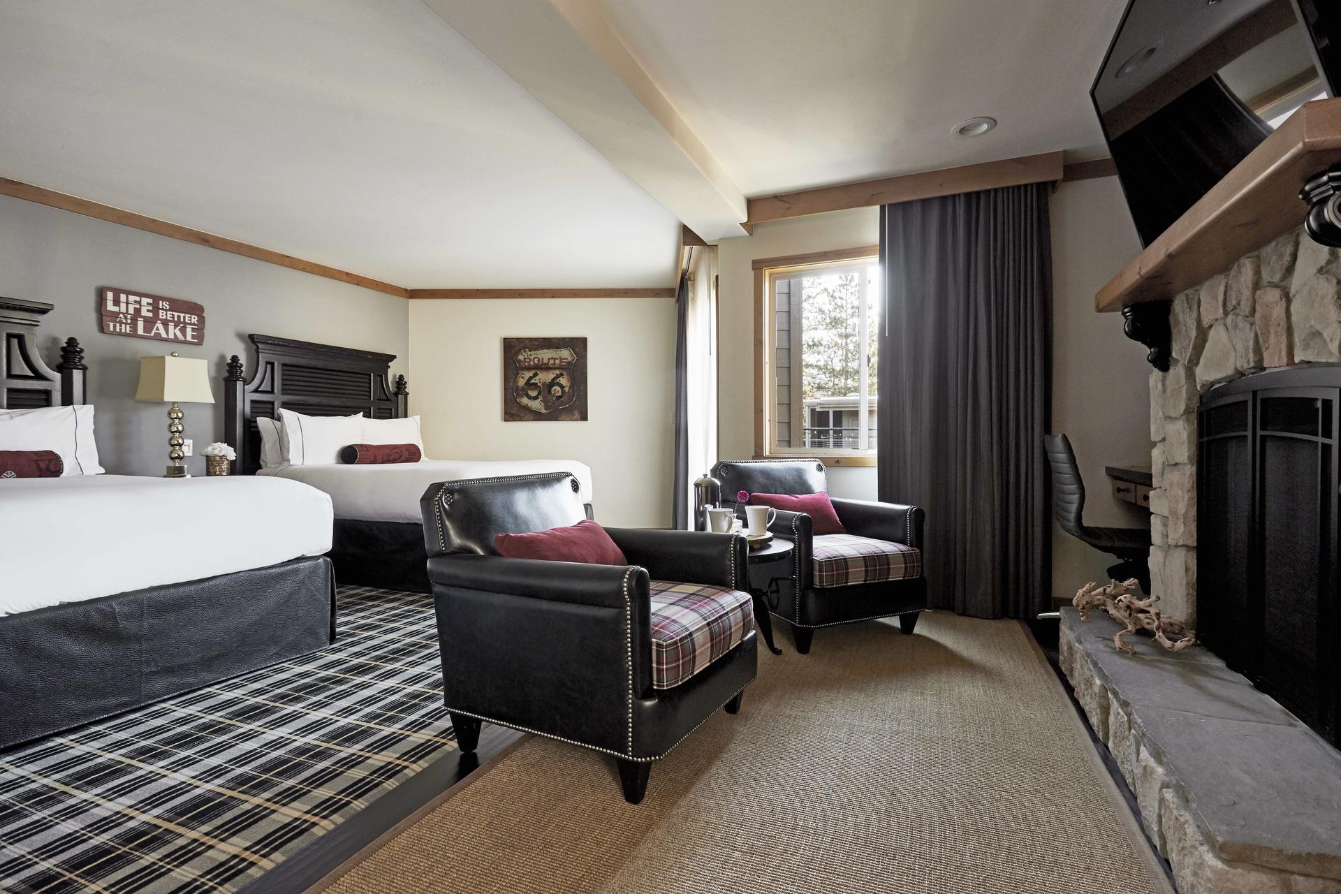 The 450 sq. ft. rooms have picture windows and warm furnishings that are perfect for relaxation. One king or two double beds available. Luxurious bathrobes, thick fluffy towels, mini-bar, high-speed wireless internet access are a few of the room amenities.
